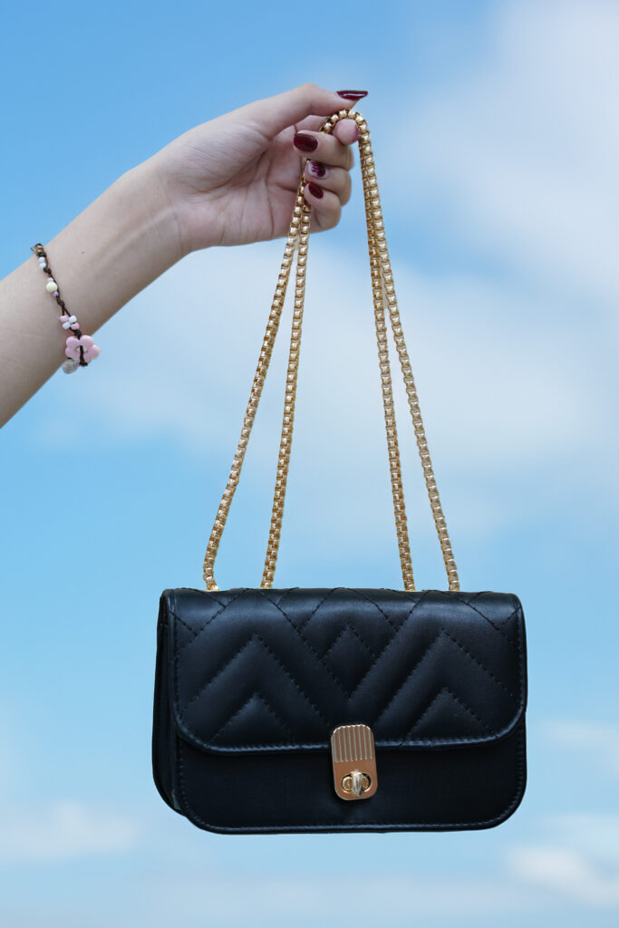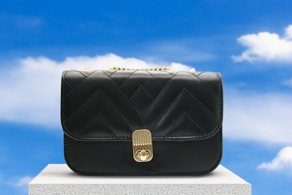 กระเป๋าใบนี้มีดีไซน์ที่สง่างาม ด้วยวัสดุหนังสีดำคุณภาพสูงที่ทำให้ดูหรูหราและทนทาน ตัวกระเป๋ามีลวดลายเย็บซิกแซกที่สวยงาม เพิ่มความเป็นเอกลักษณ์ให้กับกระเป๋า นอกจากนี้ยังมีตัวล็อคสีทองที่ช่วยเพิ่มความรู้สึกของความพิเศษและความมีราคาแพง